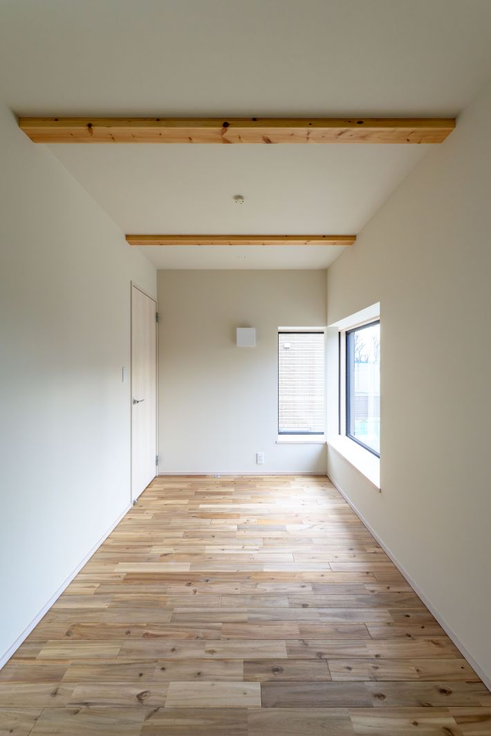 2階南側の主寝室。右奥の2面の窓が、外観写真でご紹介した出窓です