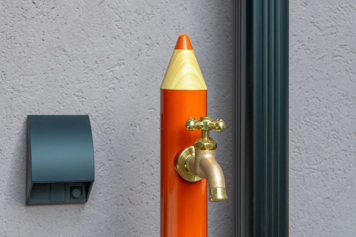 2階の洗面台に設置した、バクの形の混合水栓。遊びごころいっぱいのアイテムが、ところどころに散りばめられています