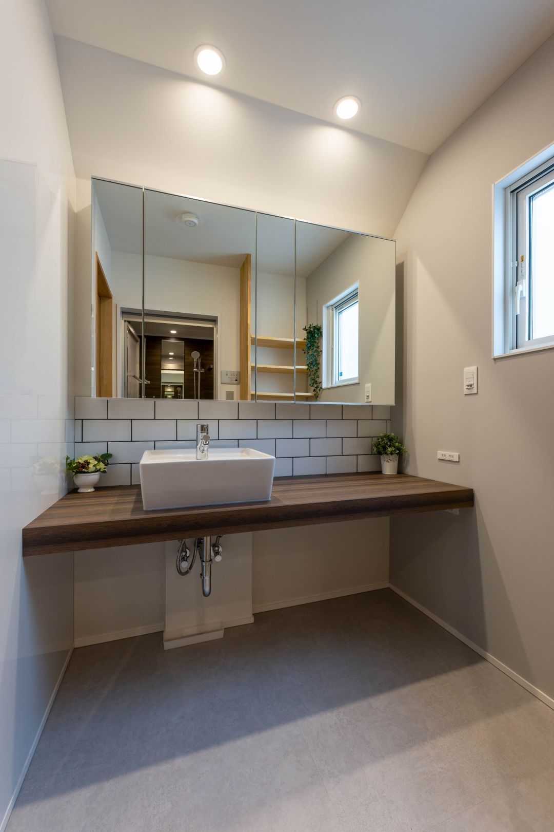 2階の洗面脱衣室。ランドリールームと分けて独立した空間なので、すっきりしています。