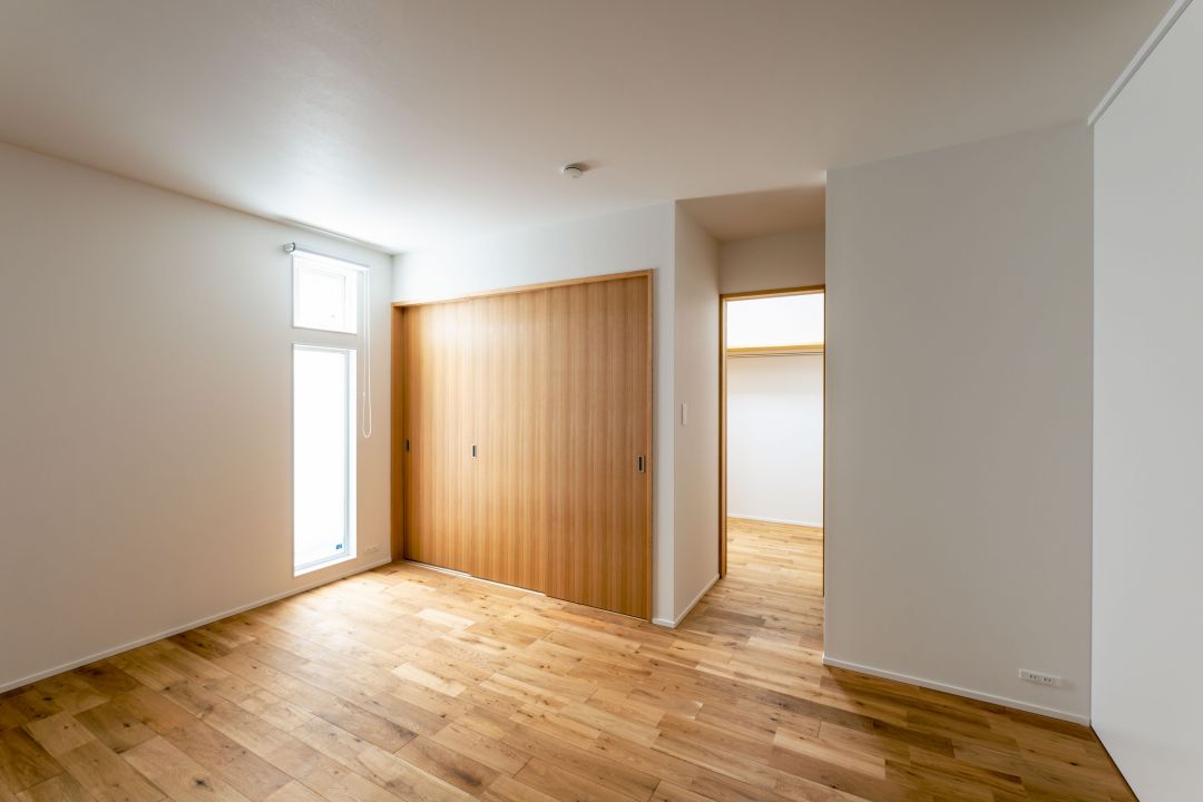 1階洋室の南側。木製の3枚扉の横はウォークインクローゼットです。