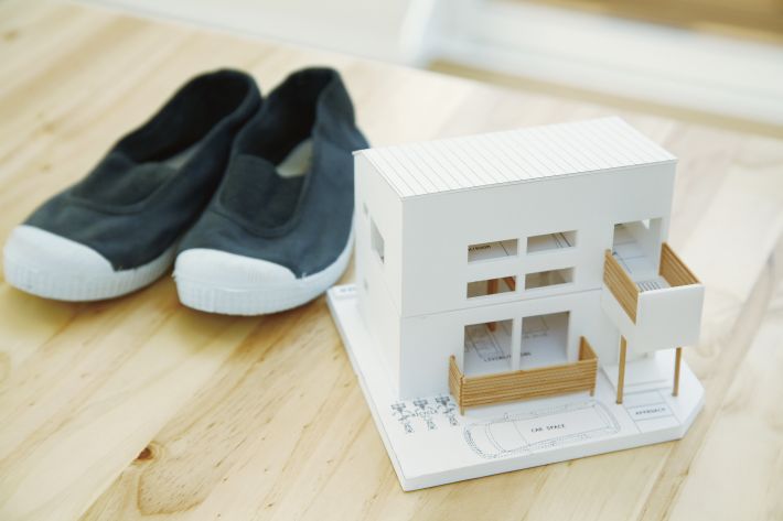 何度も調合を繰り返し実現した、靴の色と同じ外壁の色。この先お子様が成長していく中で、いつもご家族の愛情を感じることができますように
