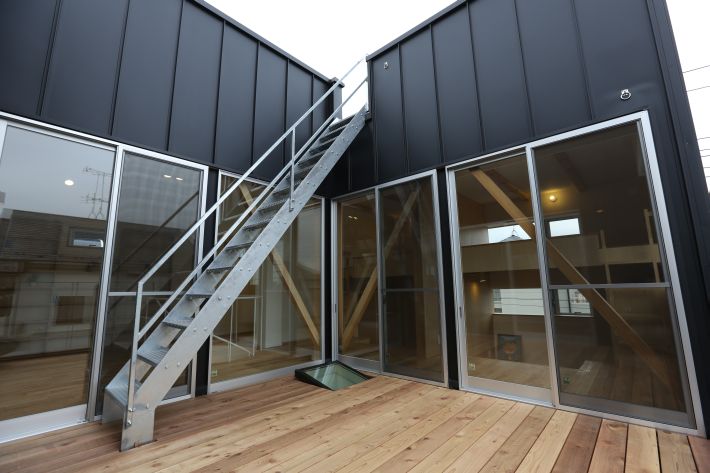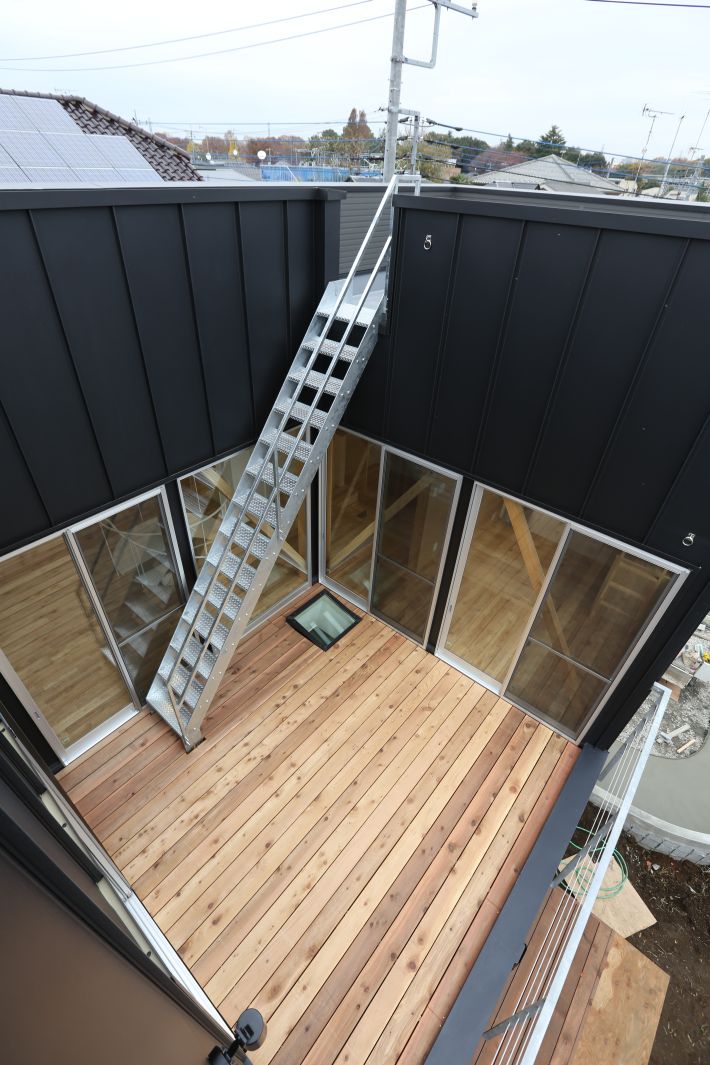 2階のテラス。階段の上は、ご家族が熱望していた屋上が広がります