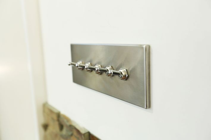 1階リビングの電気スイッチは、ご主人の愛車“ミニクーパー”と同様のデザインを!