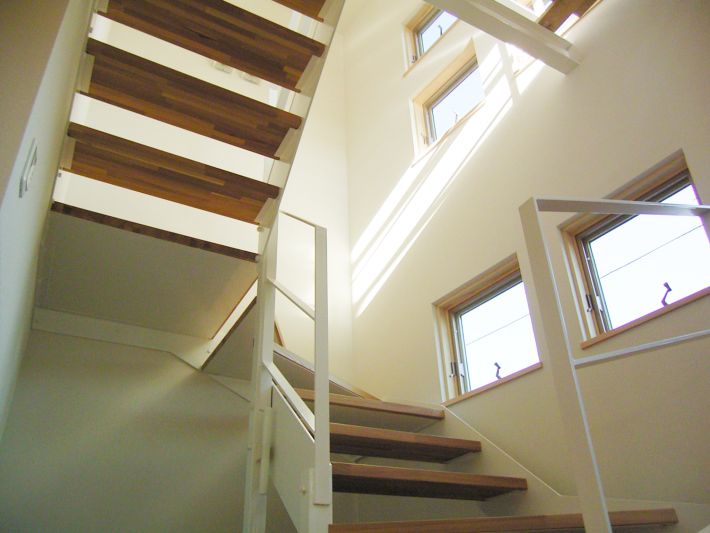 インテリア性の高い小窓からの採光・通風で、暗くなりがちな階段も明るく快適に