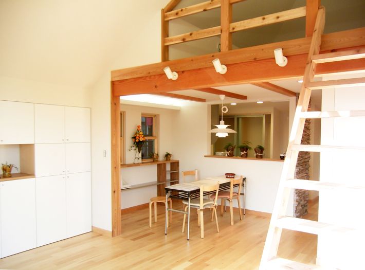 タグ:ウッドデッキ,スケルトン階段,ロフト,吹き抜け,壁面収納,造作家具